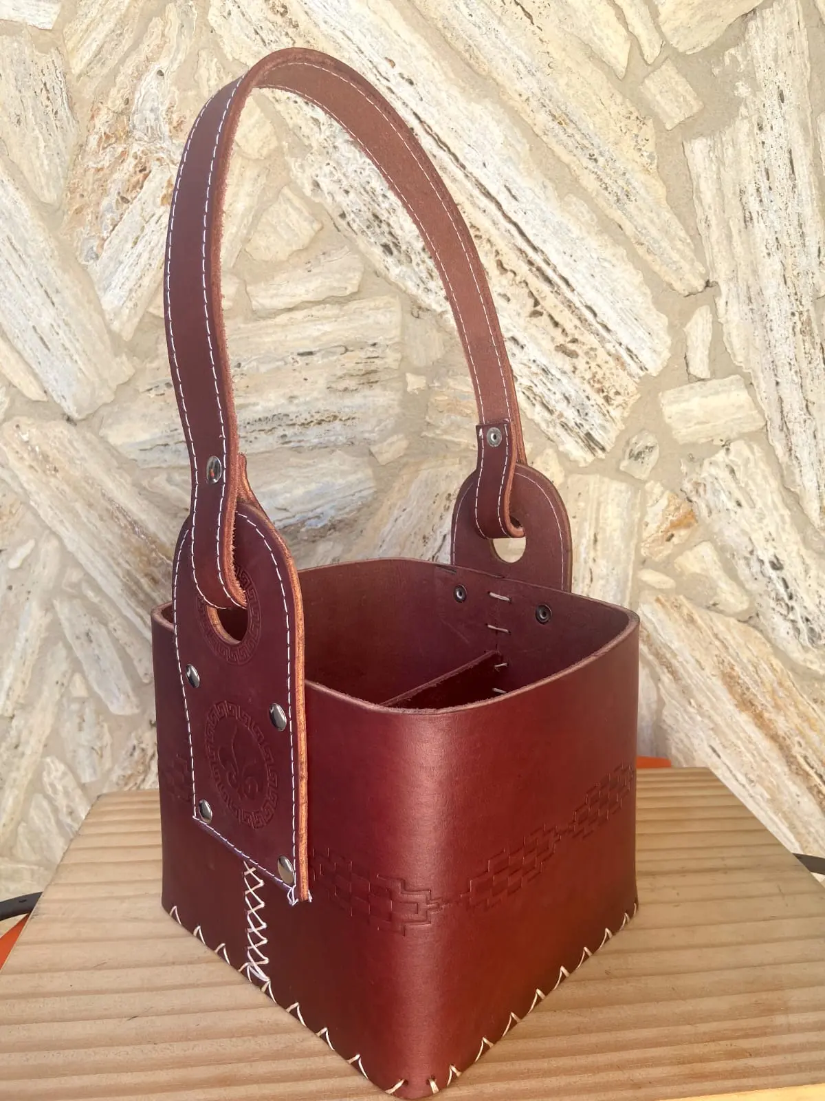 Canasta 100% cuero roja